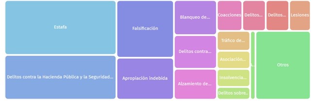 Los delitos de estafa y contra la Hacienda Pública son los que más sentencias acumulan, seguidos de falsificación.